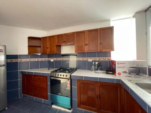 • Cocina totalmente equipada: cocina, refrigeradora, microondas, con reposteros altos y bajos.